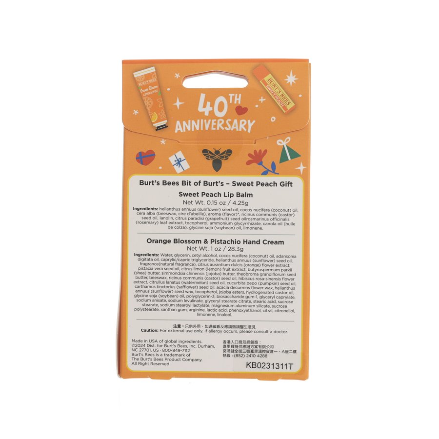 BURTS BEES Bit of Burt's - Sweet Peach Gift - Lip Balm Orange Blossom&Pistachio Hand Cream